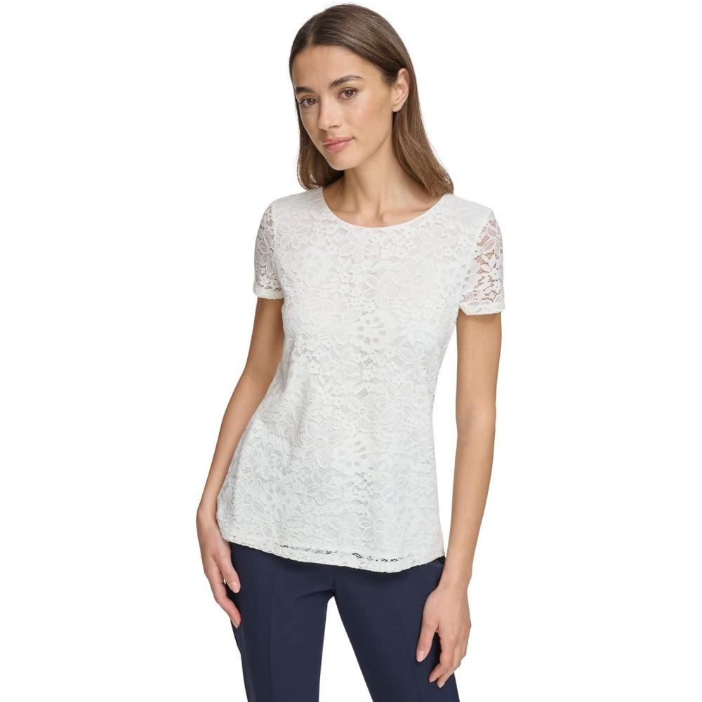 Tommy Hilfiger Short Sleeve Lace Blouse(Ivory)