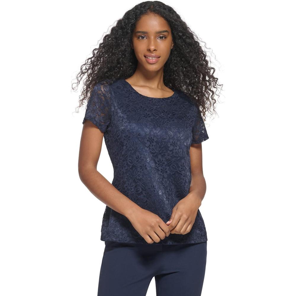 Tommy Hilfiger Short Sleeve Lace Blouse(Midnight)