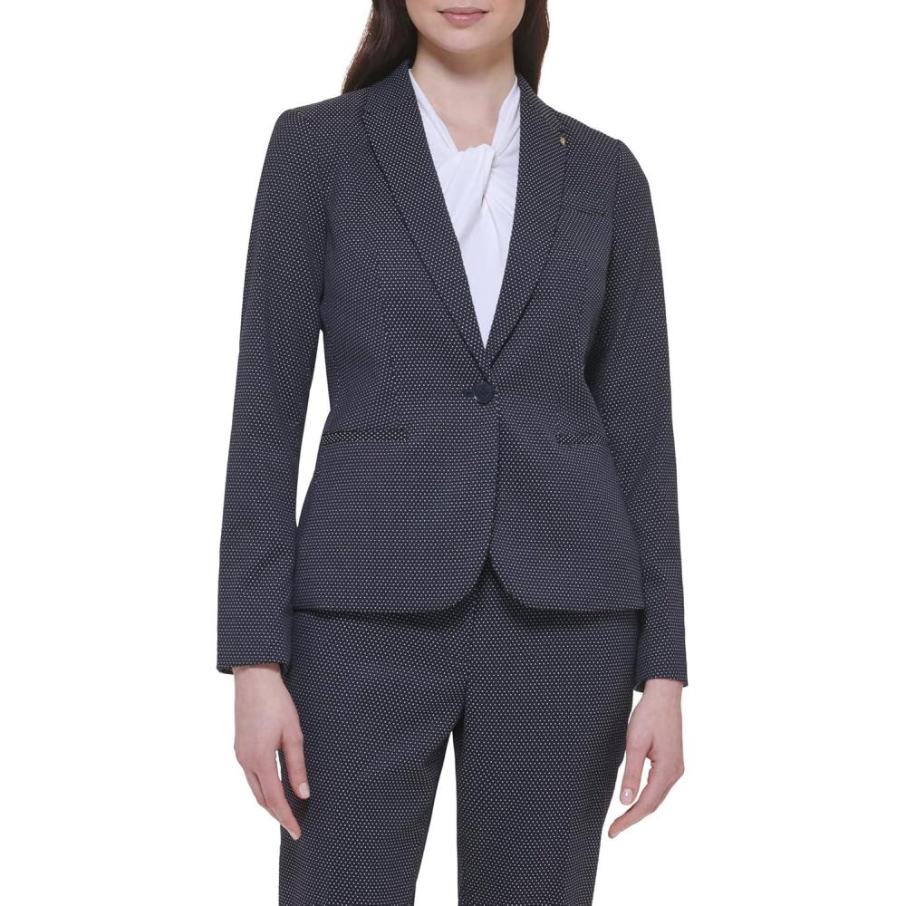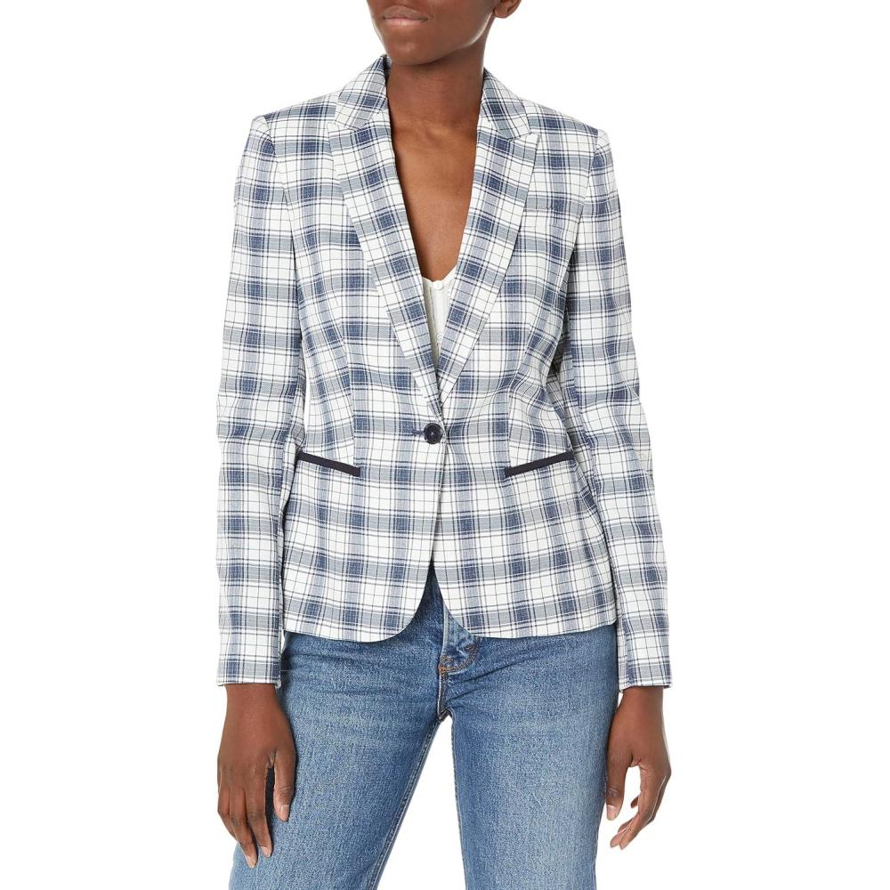 Tommy Hilfiger Solid Blazer(Midnight Ivory Plaid)